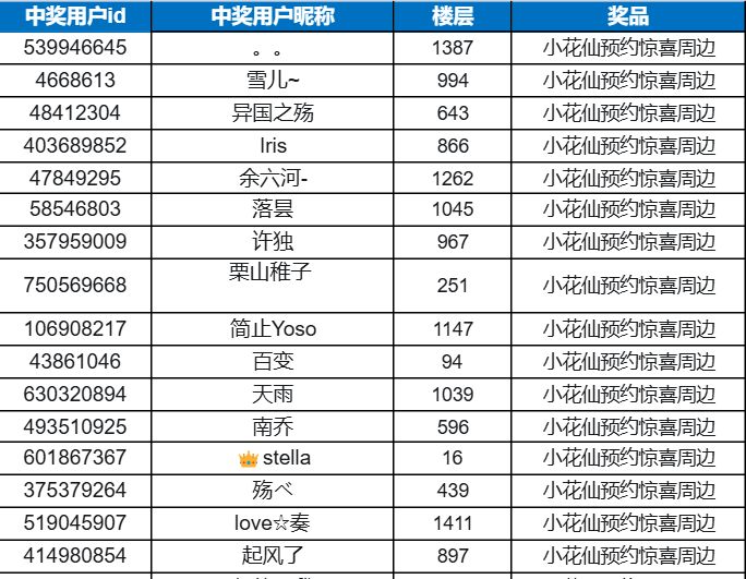 《小花仙:拉贝尔之约》已正式获得版号啦活动开奖啦!感谢大家的热情参与!!让我们恭喜以下获奖的仙子们!(鼓掌!~(‾⌣‾~)