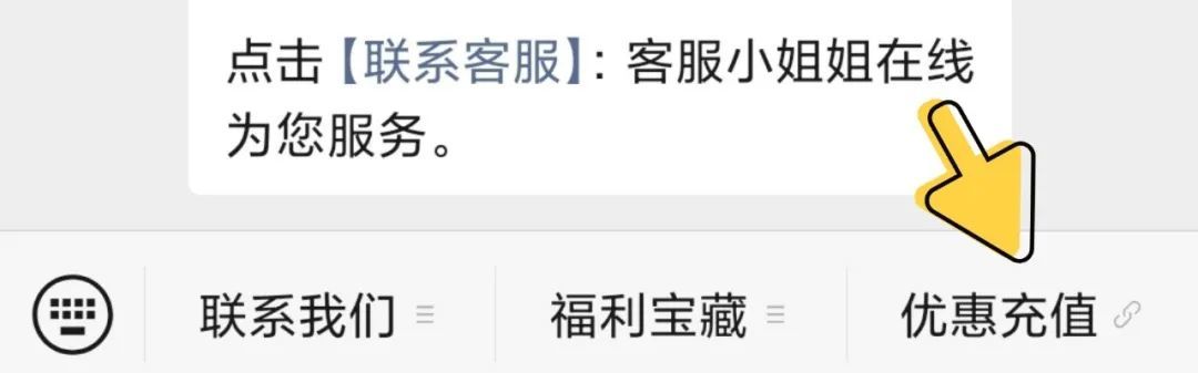 在公众号后台菜单栏中,点击【优惠充值】按钮即可进入官方充值中心。