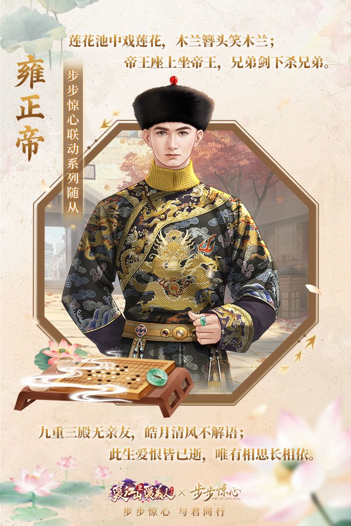 《爱江山更爱美人》携手《步步惊心》重现宫廷风云、再会命运交织,联动系列绝版随从:舞动惊鸿的若曦、白首不渝的若兰、巧捷万端的明慧、不染铅华的明玉、芳姿娉婷的敏敏、谋略深远的雍正帝也等待着各位小主们参与联动活动结识获取!