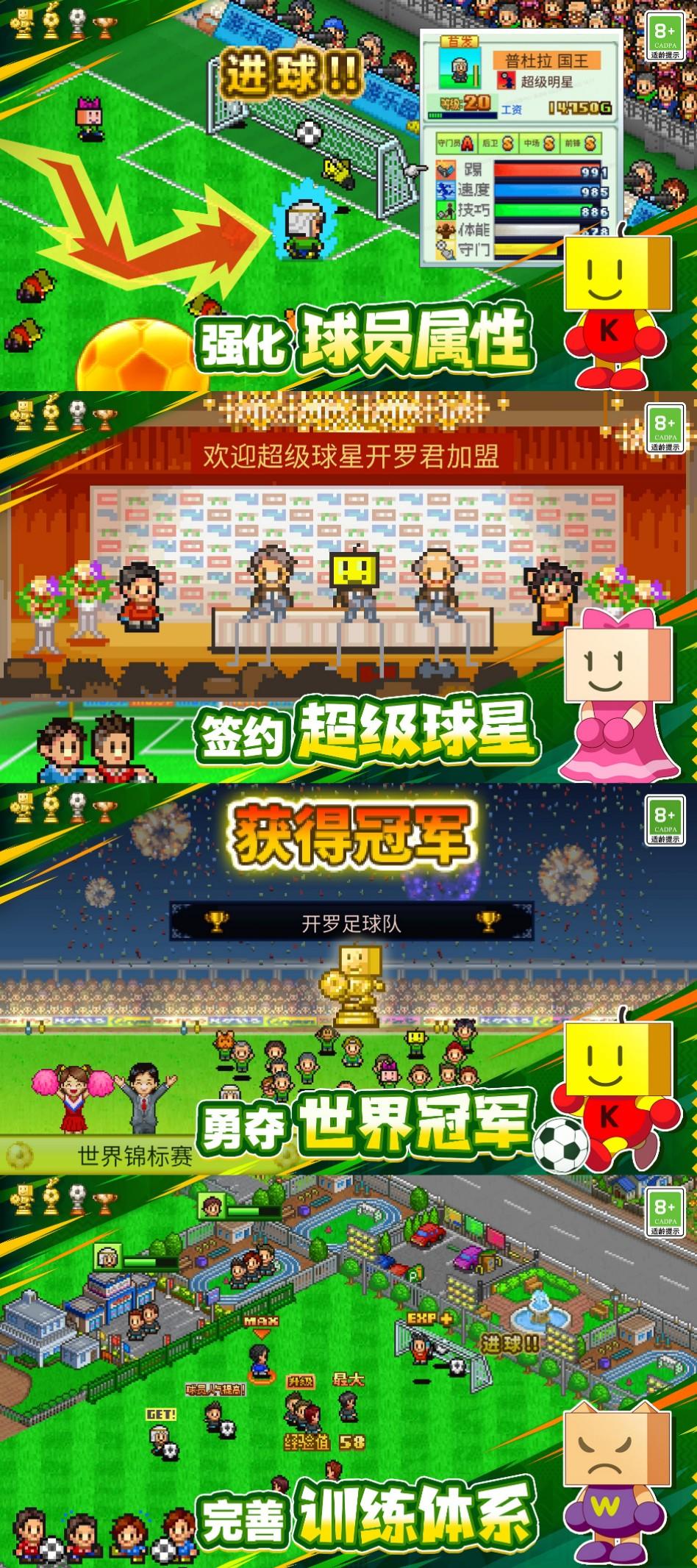 在游戏里你经营着一家足球俱乐部,在这里,你可以培养明星球员,打造训练方针,举办地区活动。在努力经营俱乐部的同时,签约赞助商,发现明星球员,带领着球队拿下冠军,不断向全世界的强队发起挑战!