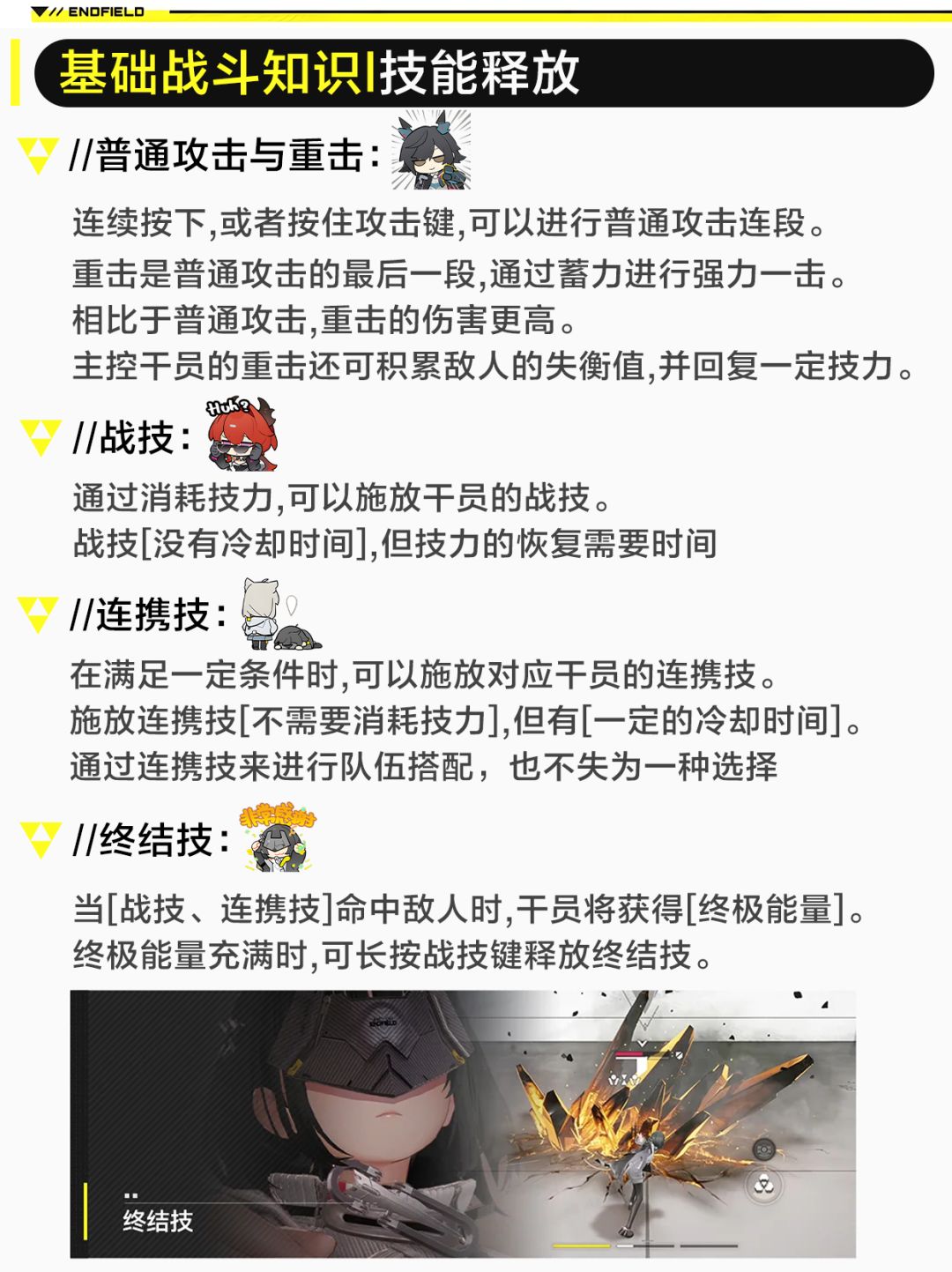 塔卫二危机四伏,管理员这本萌新指南就交给你了,与其他游戏不同的是,在终末地地使用连携技也是不会切换主控角色的,终结技只会出现大招cg