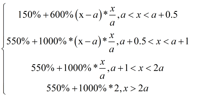 金词条:(x-a)≥50% 额外系数+400%;额外伤害赔率调整,调整系数max(2,x/a),