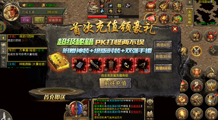 游戏嗖V公粽浩(旭旭游戏)痛点破解1:升级卡壳?分阶路线经验翻三倍新手最愁“主线做完没事干,等级原地踏步”,其实按阶段规划经验获取,效率能直接拉满。1-20级别贪多,紧跟“比奇城主”主线是核心,不仅能快速熟悉操作,完成后赠送的60分钟练功符堪称神器,激活后在练功房挂机,经验涨速比野外刷怪快3倍。别忘了顺手接取主城万事通的日常任务,耗时10分钟就能拿到稳定经验,积少成多很关键。20-40级进入提速期,组队刷怪是王道。蜈蚣洞是性价比首选,黑色恶蛆、钳虫血薄易清,还能掉落基础防具和祝福油,掉落率高达25%。组队时战法道各司其职:战士“野蛮冲撞”聚怪,法师“地狱雷光”控场+“冰咆哮”输出,道士“施毒术”减防并召唤神兽抗伤,这套组合刷怪效率提升50%。每天12:00-14:00的多倍爆率时段务必上线,此时刷猪洞三层的白野猪,经验和装备收益双丰收。40级后解锁高阶玩法,神舰跑船活动千万别错过。每晚7点到12点开放的这个活动,从神舰三层跑到一层找到大使,就能领取海量经验和稀缺材料。建议组队参与,15分钟就能完成,比独自刷怪性价比高太多。