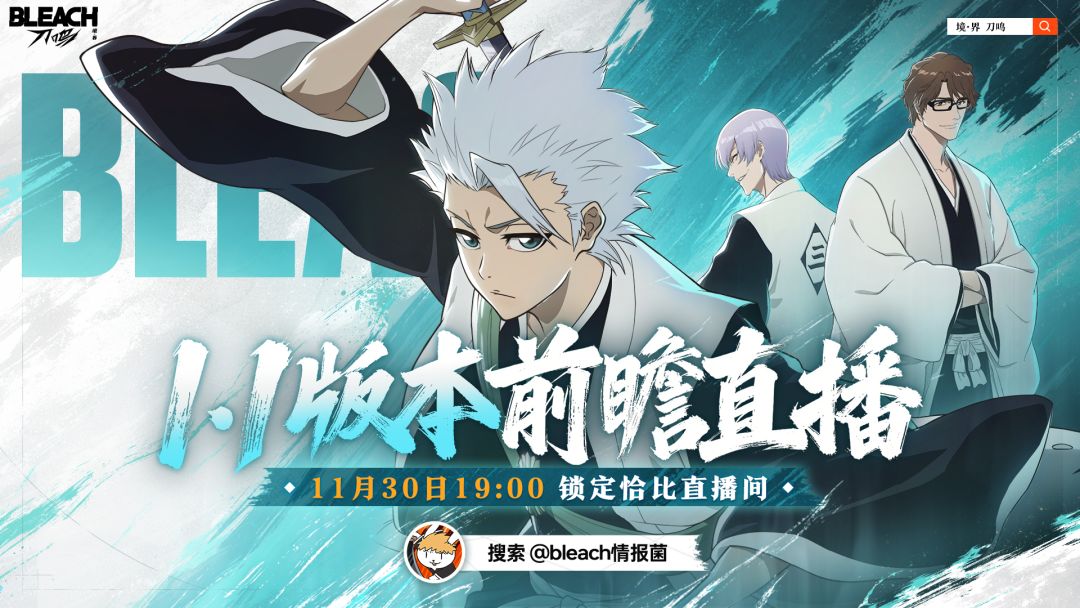 B站、抖音搜索 @bleach情报菌 直播间,11月30日19:00,与你不见不散~