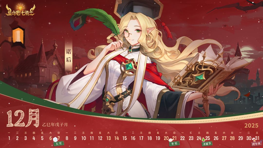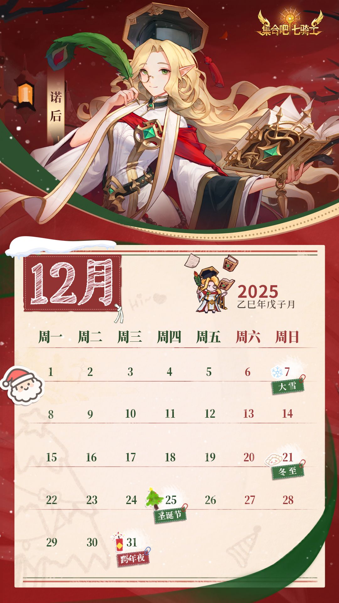 《集合吧七骑士》诚献十二月主题月历,伴随各位团长共度这个充满仪式感的岁末之月。