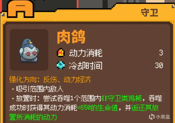 守卫:血量尽量低,太高五秒之内可能回不上来,而且因为根本死不掉,还可以刷钱。奶量上来了可以换肉鸽给基地车刷点血量刷点钱。