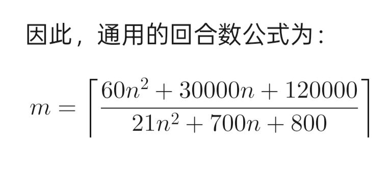 经过简化模型计算,不算回血回合,需要这么多回合才行: