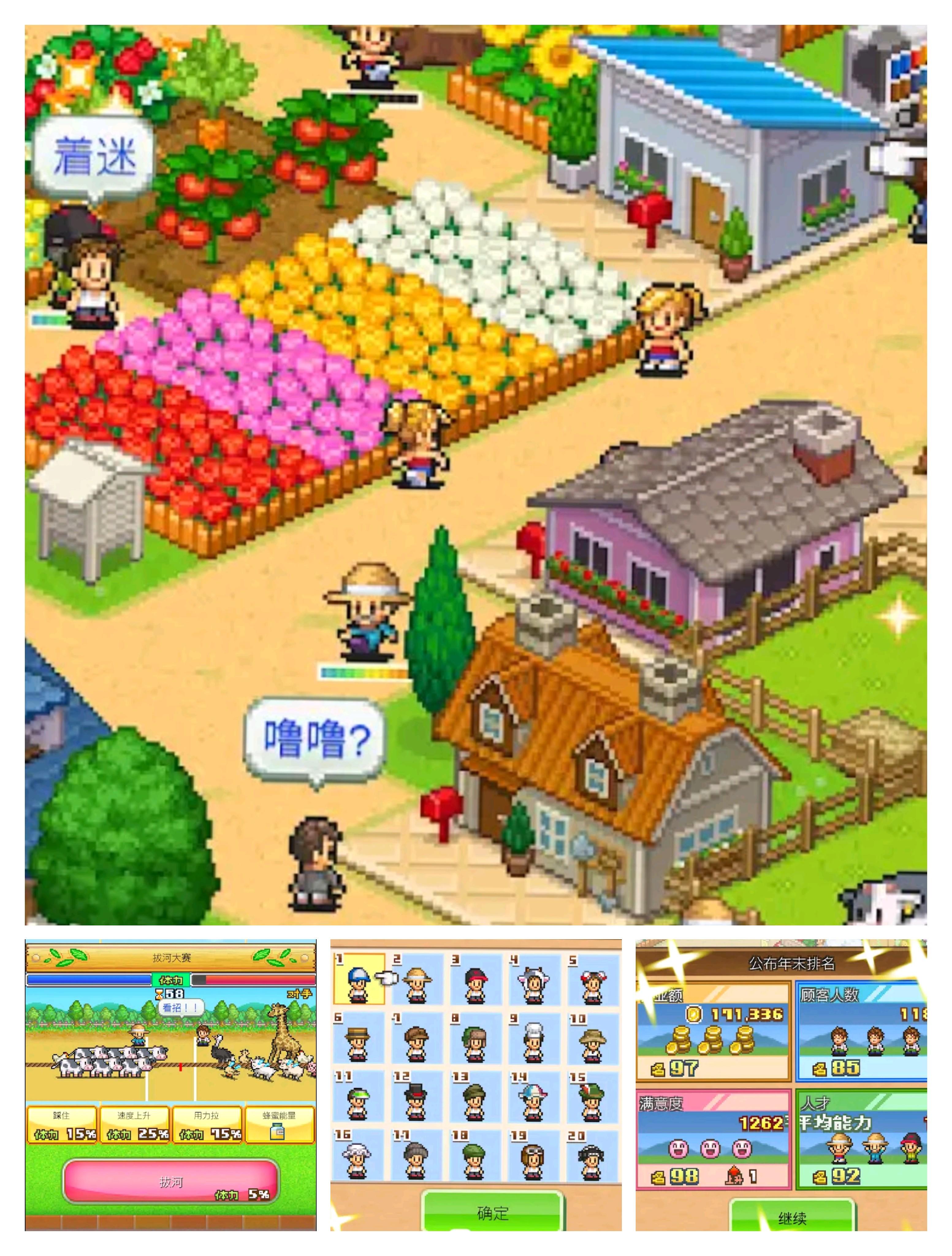 在游戏里你可以经营一座牧场,在四季的变化中种植合适的花卉和蔬果,也能养各种各样的动物,在不同的分区建造适合的建筑提高收入,制作道具,参与各种各样的比赛评选获得奖励,将牧场装饰的丰富多彩,四季如春吧!