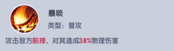 攻击敌方前排,对其造成38%物理伤害。