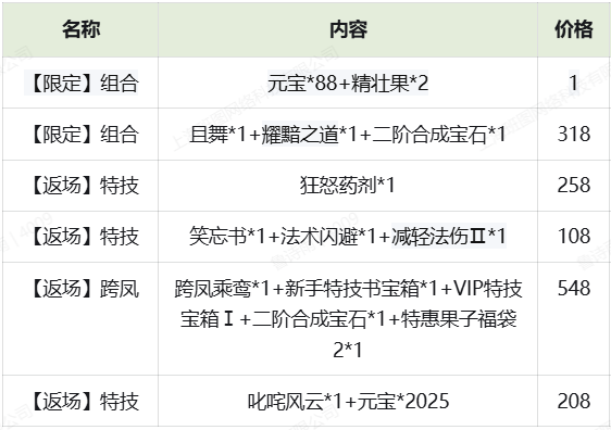 【活动内容】:活动时间内元宝商店部分特技限时折扣
