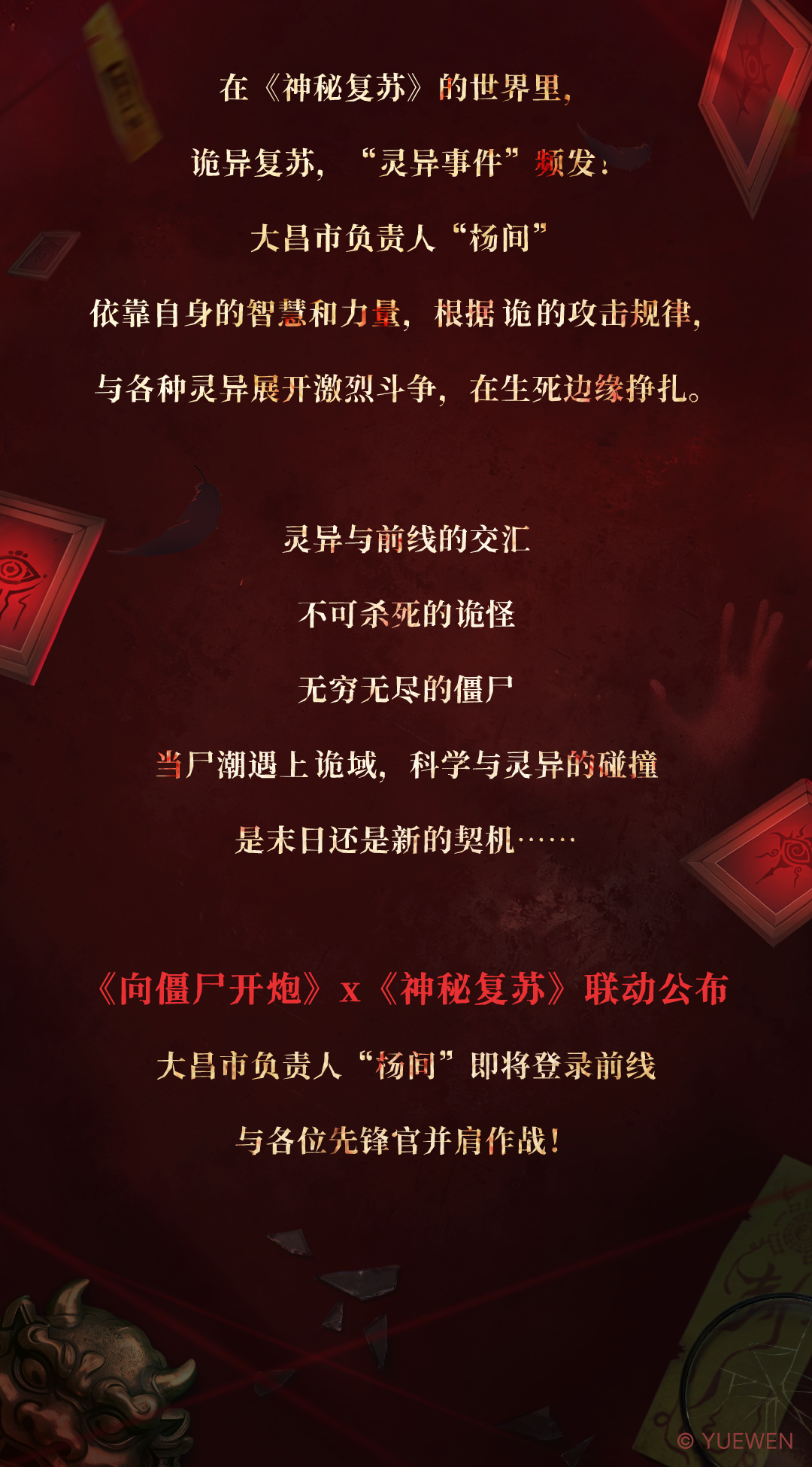 《向僵尸开炮》 × 《神秘复苏》联动确认!