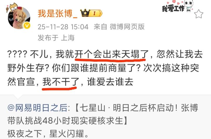 看到消息后的策划,悲愤发文:“????我不干了,谁爱去谁去”