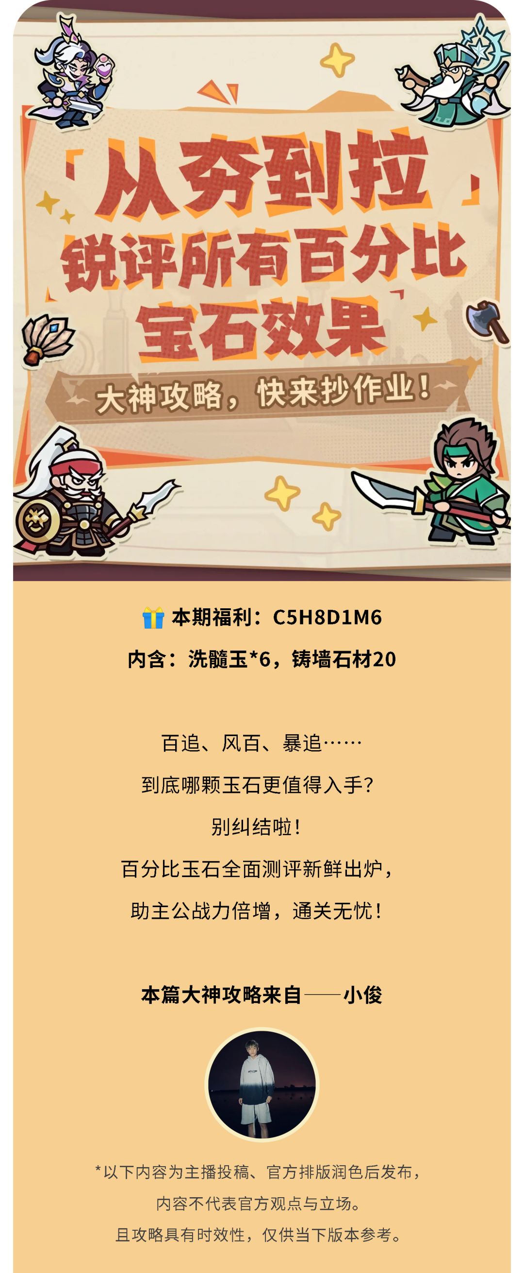 【内含福利】大神攻略丨从夯到拉锐评!百分比玉石天梯榜来了!