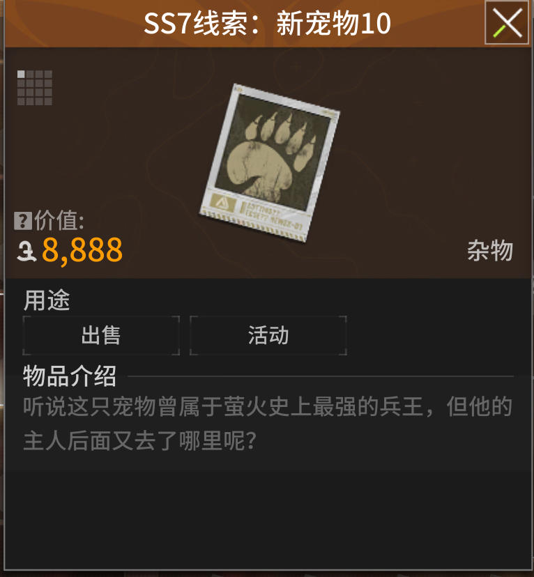 小狗出击?!最友好的线索出现了,印象中在之前的资料里,就有研究人员称:发现了一只流浪狗,难道新宠物和它有关?从线索来看,它还具备特殊的侦察手段和压制能力,那今后获取信息的效率不得库库提升?!