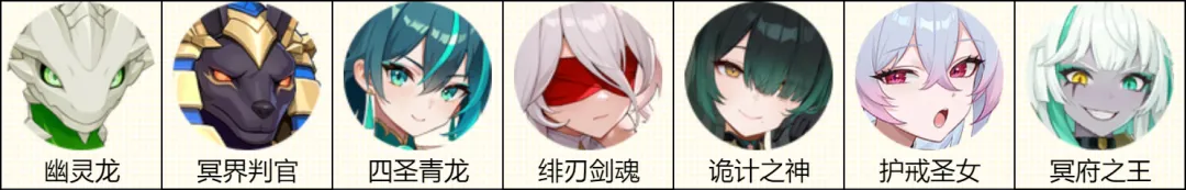 ◇ 输出位:诡计之神、冥府之王、绯刃剑魂、四圣青龙