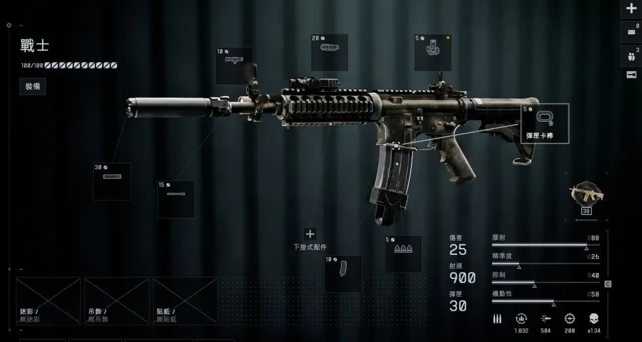 作为一把萌新时期就能游玩的武器,它的强度可以说是相当之高。900射速加优秀的腰射属性在巷战中面对除tr7和scw等t0轮椅之外的枪可以说是有着压倒性的优势。在这给大伙推荐2套配装。1.开镜套