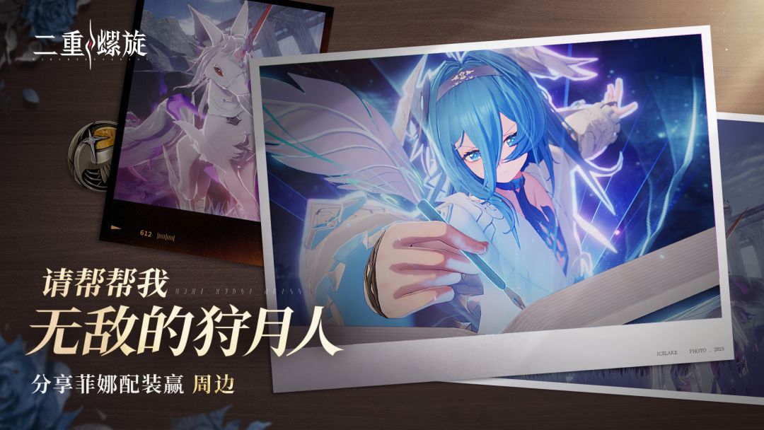 评论区留言,分享菲娜配装配队,我们将抽出幸运狩月人,送出二重螺旋周边奖励。