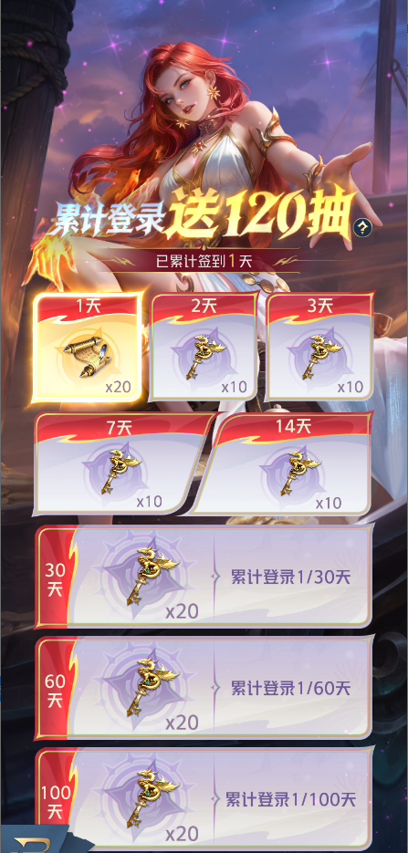 完成指定累计登录天数并满足等级要求,即可免费领取最多龙鳞密钥*100,魔法卷轴*20的丰厚奖励!