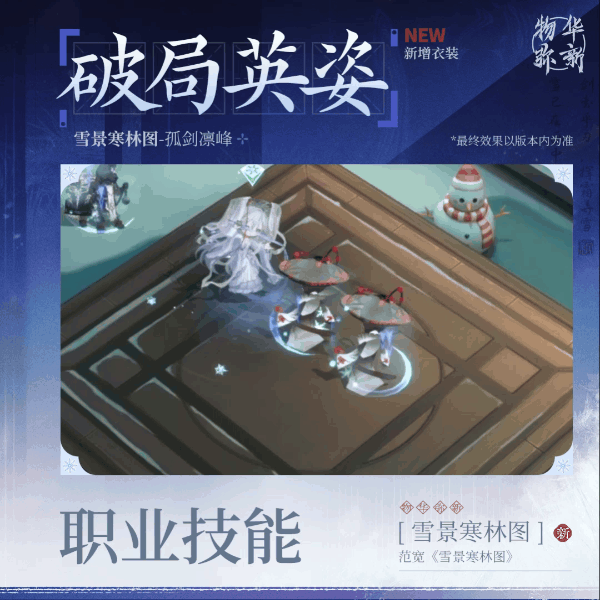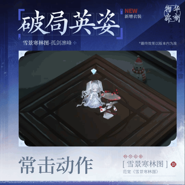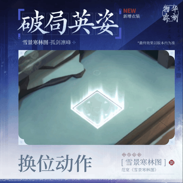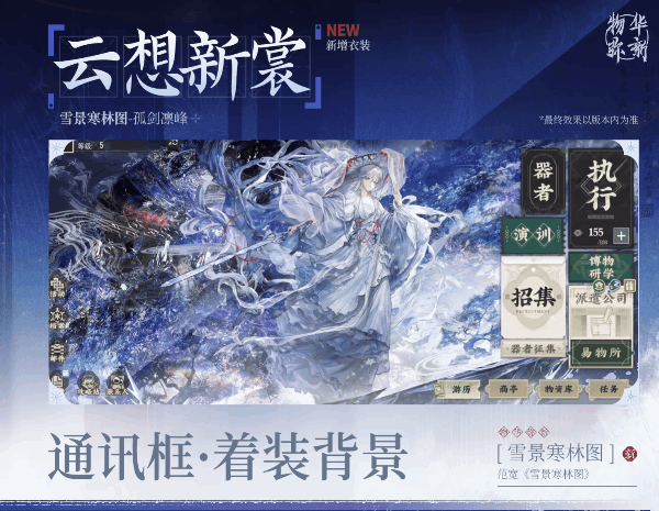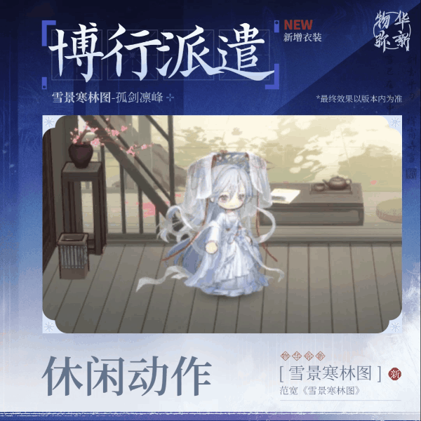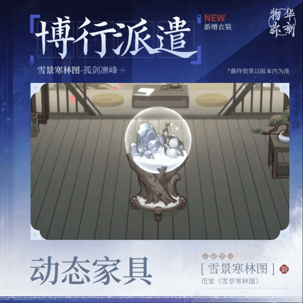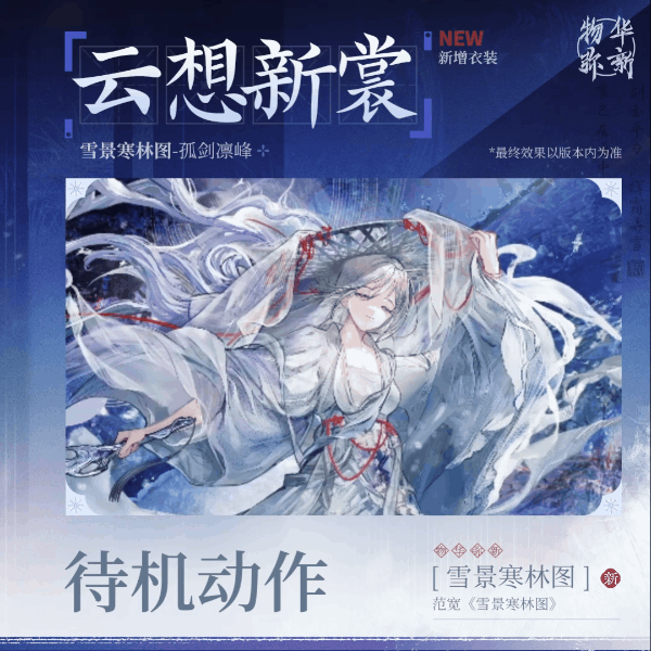 ※ 购买「孤剑凛峰」礼包,即可拥有雪景寒林图云想新裳系列衣装「孤剑凛峰」、动态家具、动态头像和通讯框。