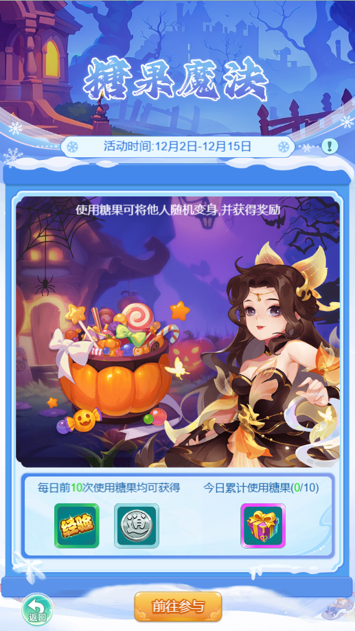 3、每日前10次使用将获得银币、经验奖励,累计使用10次后可在活动界面领取糖果魔法奖励。