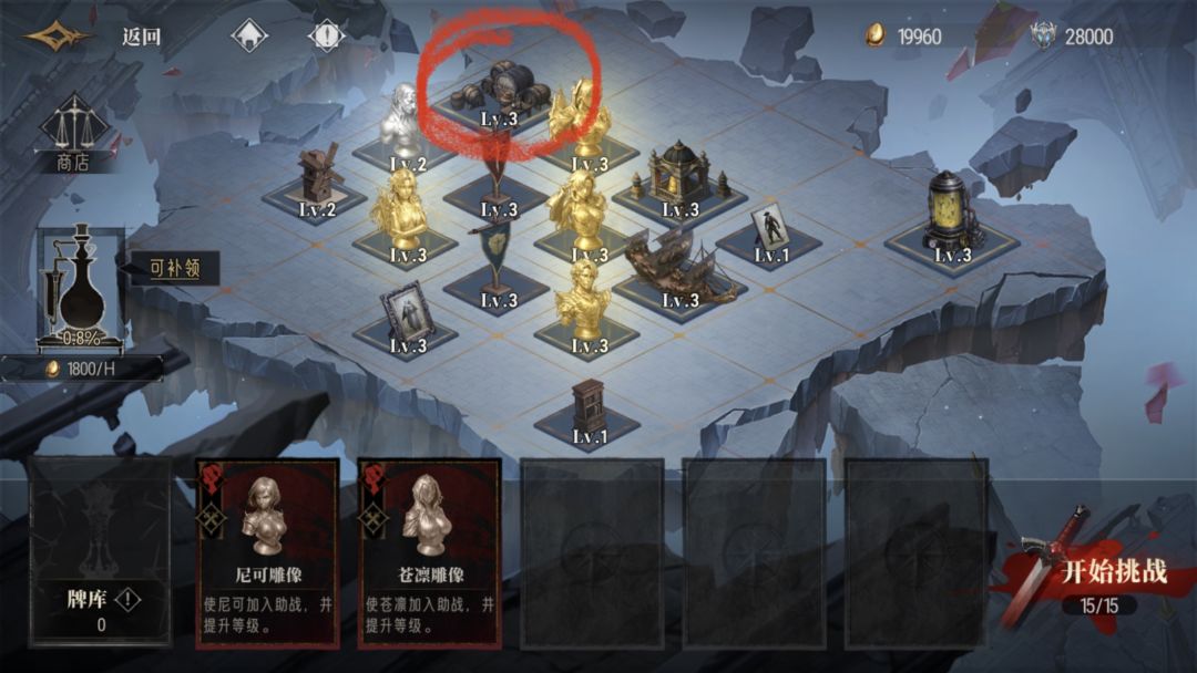5. 最后一张图片,有一个棋子被圈起来了那是【狂欢酒窖】我当时放错位置了,第一次打不熟练,后来看文字说明,应该放在助战造物旁边,不应该放在人旁边