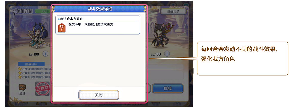 ・每个回合都有各自的「战斗效果」,可对己方角色进行强化。