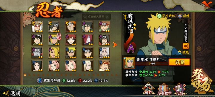 我这号现在是属于那种僵尸号要说角色强度的话忍战雷现在有80个碎片,传说自来也有65个碎片也快有了到时候再充两三个月的月卡然后再补一个198忍法帖差不多也能把这号正式养起来了