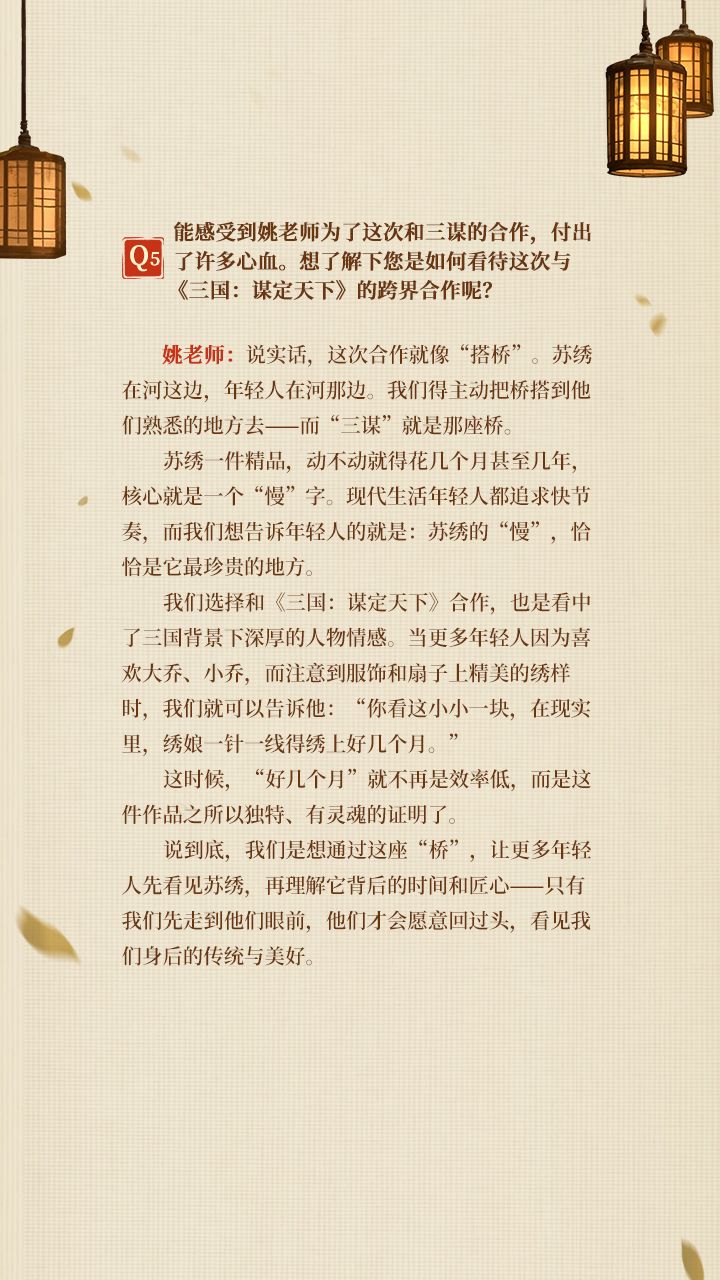 《三国:谋定天下》苏绣非遗联动「绣影双生」,姚惠芬老师专访!快跟乔妹一起,探寻老师背后的故事,走进千年苏绣传承吧!