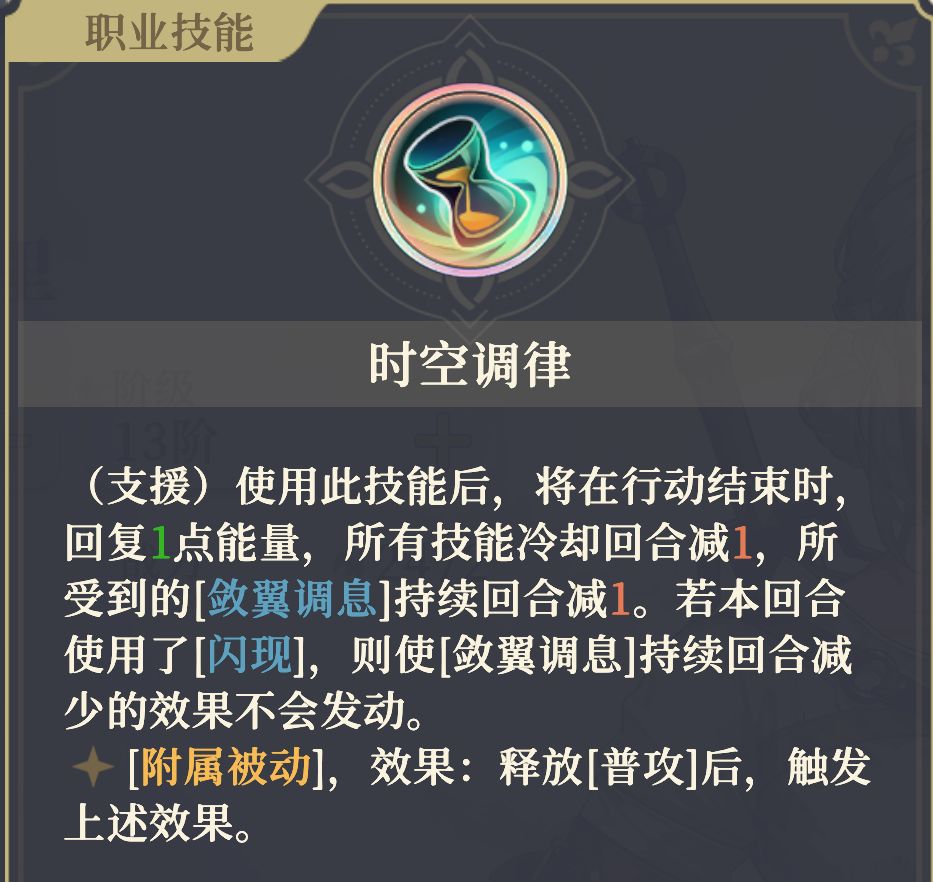 导致在[敛翼调息]1回合的时候触发[时空调率]效果,无法在当前回合触发[闪现]。