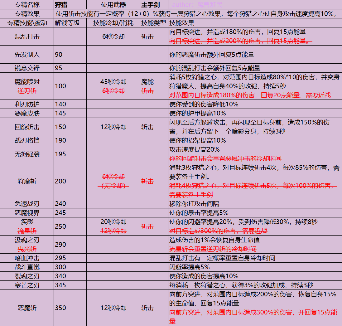 2025.12.02 10:16更新5版,魔猎手三系专精技能调整,CD均为6秒