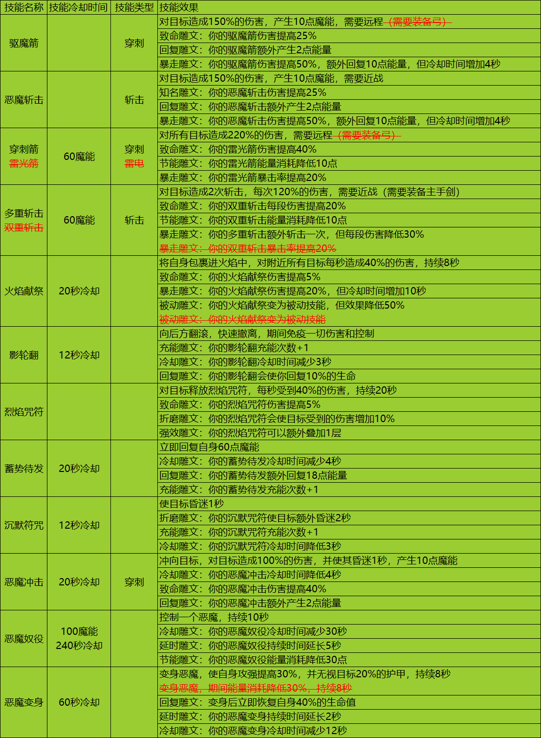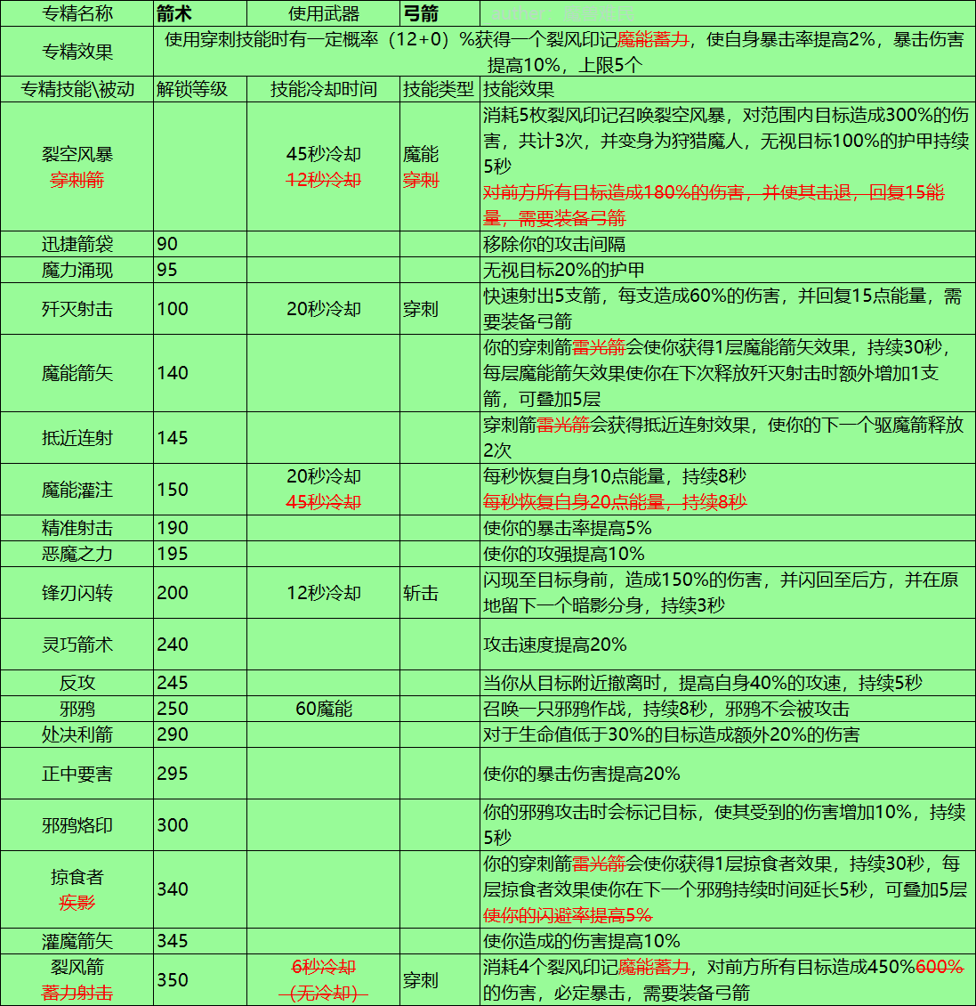 2025.11.28 21:25更新1版,魔猎手专精一览(狩猎、箭术、魔人)