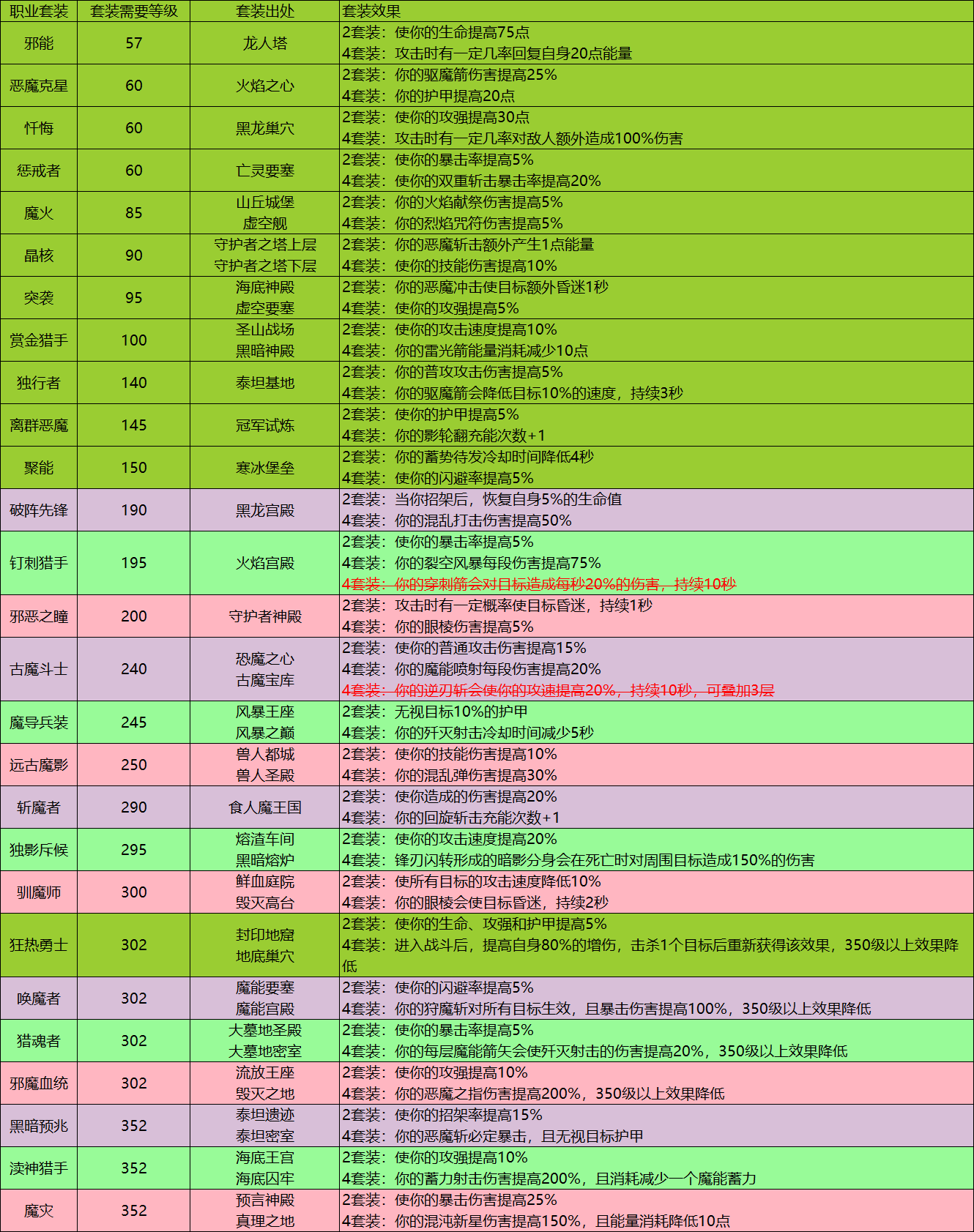 2025.11.29 19:51更新2版,魔猎手技能一览(通用技能、专精技能、雕文)、魔猎手被动一览、魔猎手饰品一览、魔猎手职业套装(1-250级套装)