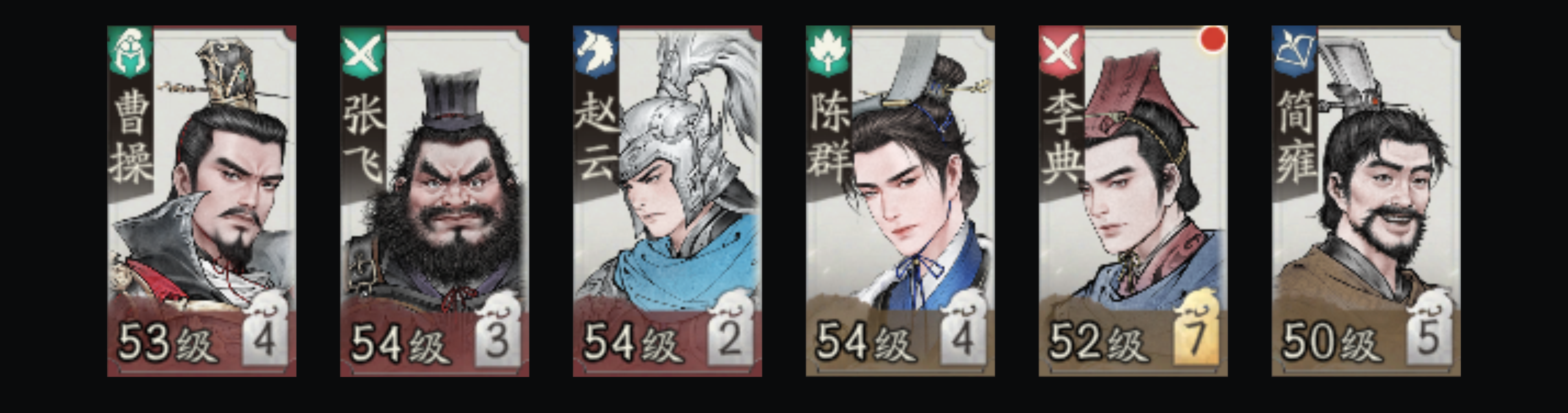 曹操、张飞、赵云、陈群、李典、简雍