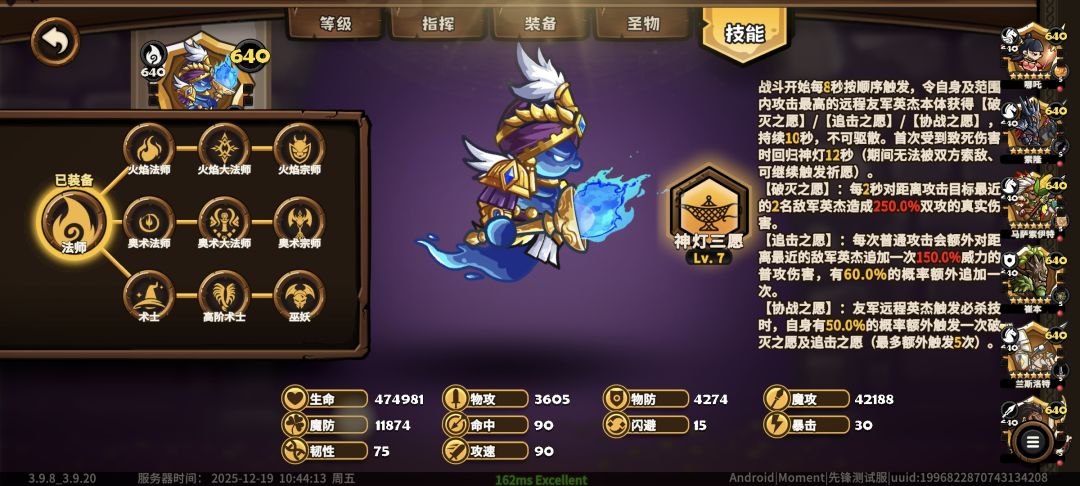 每8秒发动一次愿望,自身和攻击最高远程队友可以吃到,全场范围索队友,实时判定双攻总合最高的远程,目前是弓为主,后续应该会整体加法师的物攻,并非按开局面板。