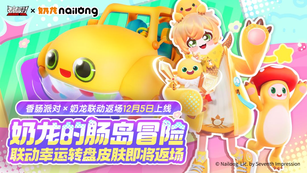 香肠派对×奶龙联动幸运转盘皮肤将于12月5日回归肠岛!圆滚滚的奶龙重返肠岛,熟悉的萌萌力量再次上线!让我们奶住这一波,与奶龙一起再度玩转肠岛风云!