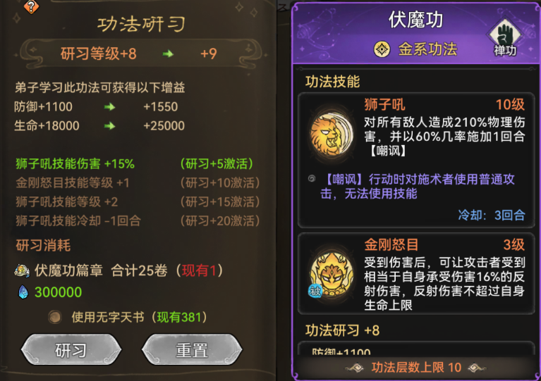 - 增强输出手段?道兵-雷珠 防御输出 + 🈲技能 配合金系功法和技能。