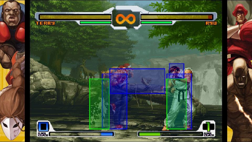 游戏的训练场模式也为玩家提供了可以训练和提升技术的场所,玩家可以设定角色的动作逻辑,打开hitbox击打框和出招记录功能,仔细钻研和磨练格斗技术。