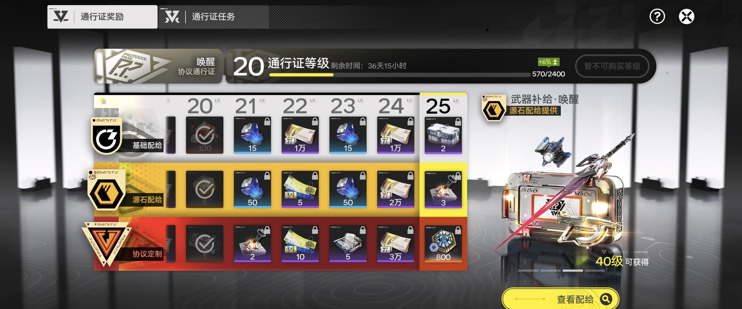 此外,新手6元首充可赠送6颗源石及1把六星武器,性价比相当高。主线及各类活动渠道仍会赠送大量源石,尽管源石购买力不及《明日方舟》,但只要愿意消耗源石购买二级通行证,长线体验会优于其他同类竞品。鹰角通行证分为三个等级,二级通行证需用源石购买,且通过完成每日活跃度任务可返还等量源石,相当于“白嫖”通行证福利。