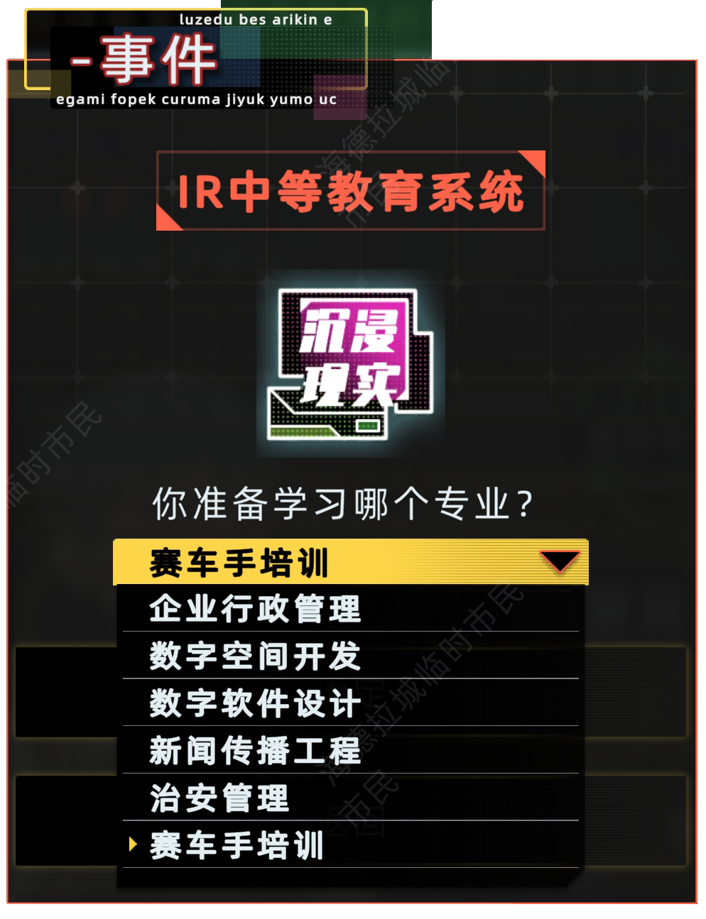 在IR教育系统中,角色年满11岁后可选择赛车手培训,这是开启其职业赛车手生涯的先决条件。