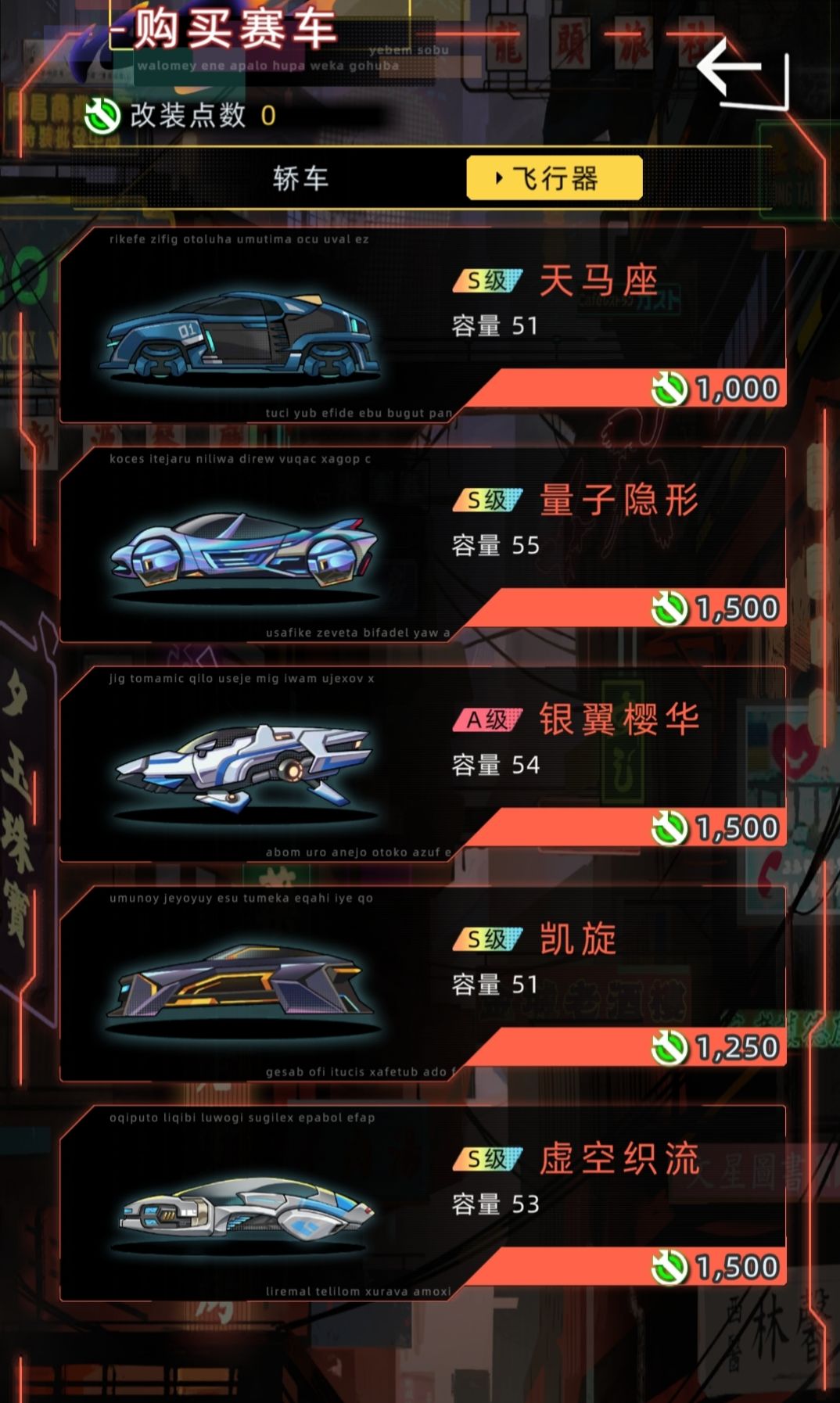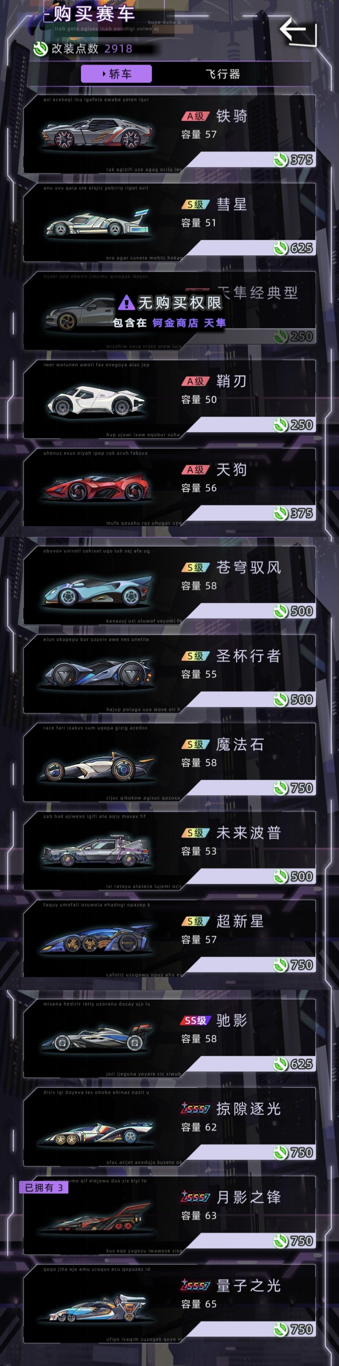 入职后:入职直接送一辆S车彗星,后续买车/换车需要花改装点数,不花钱。