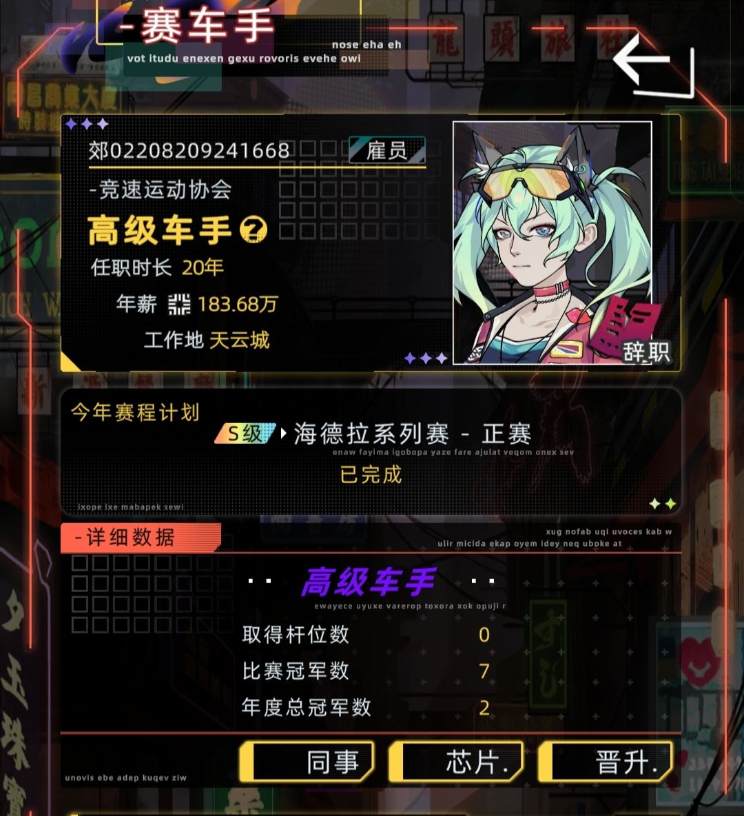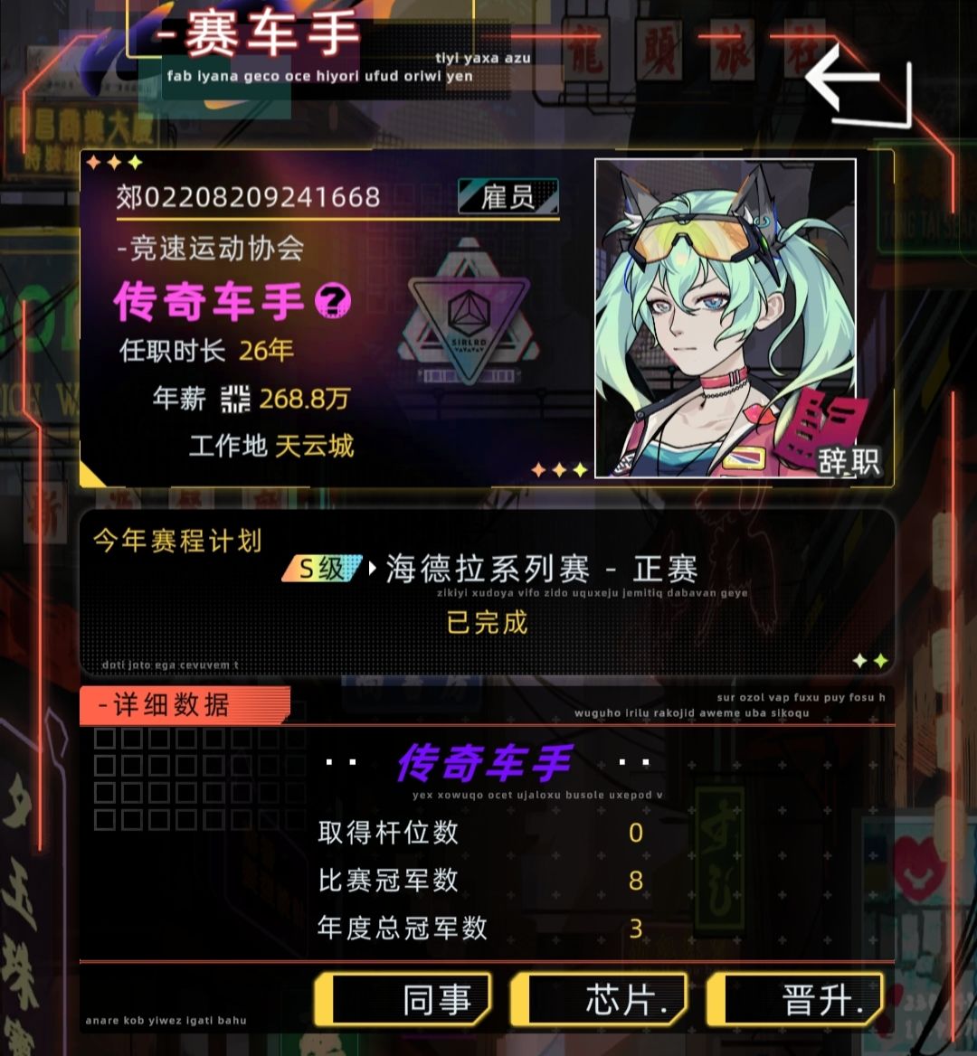 职业升级:要求前置比赛优胜,体能、智力属性值,芯片等级。