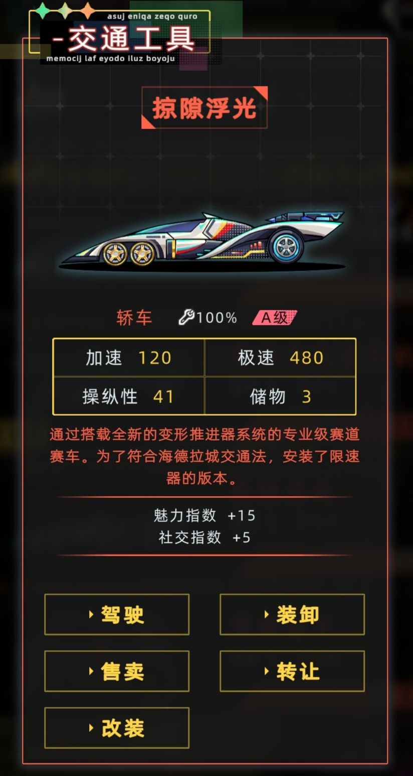 ④天赋[疾驰赛道]:获得车队并获得奖励为股权的任务(目前这个任务基本不可能完成,升级太慢了),获得的车队给一辆SS车,但没有车手