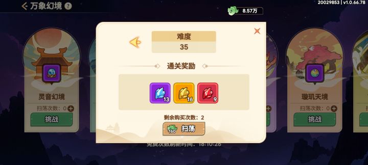 - 关键:一定要先推关卡!等出现橙色灵兽碎片掉落概率后再开始扫荡
