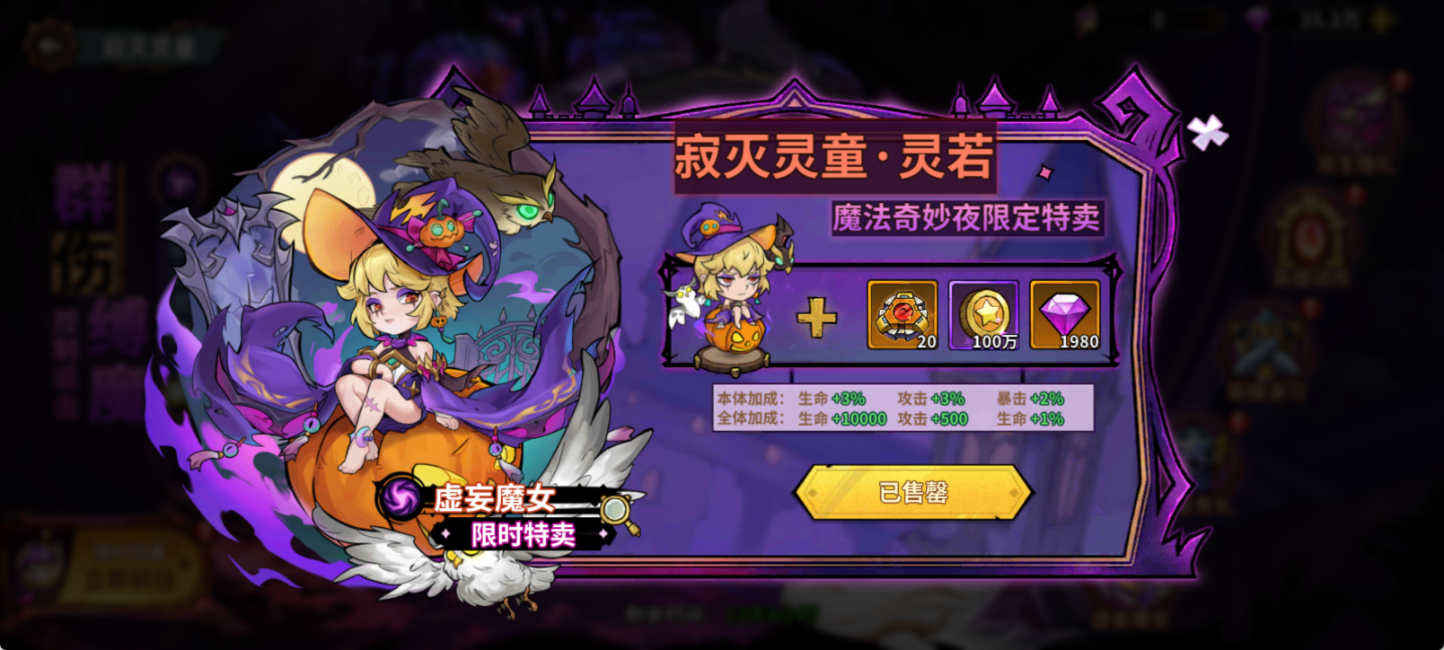 🔑皮肤限定:灵若限定时装「虚妄魔女」限时特惠,解锁额外属性加成,心仪的指挥官千万不要错过!