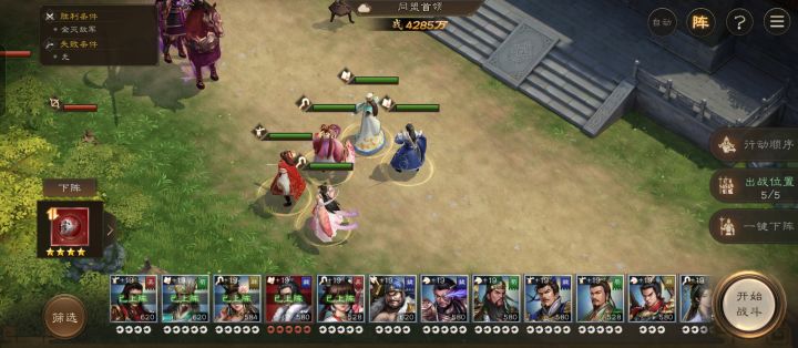 14星周瑜,左侧两个小兵和boss。利用郭嘉短腿和诸葛亮清buff,保证周瑜站撸无敌