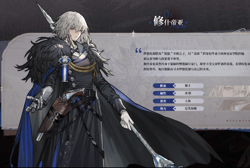 3.修什蒂亚:6星冰系骑士;擅长双枪普攻,效率拉满。