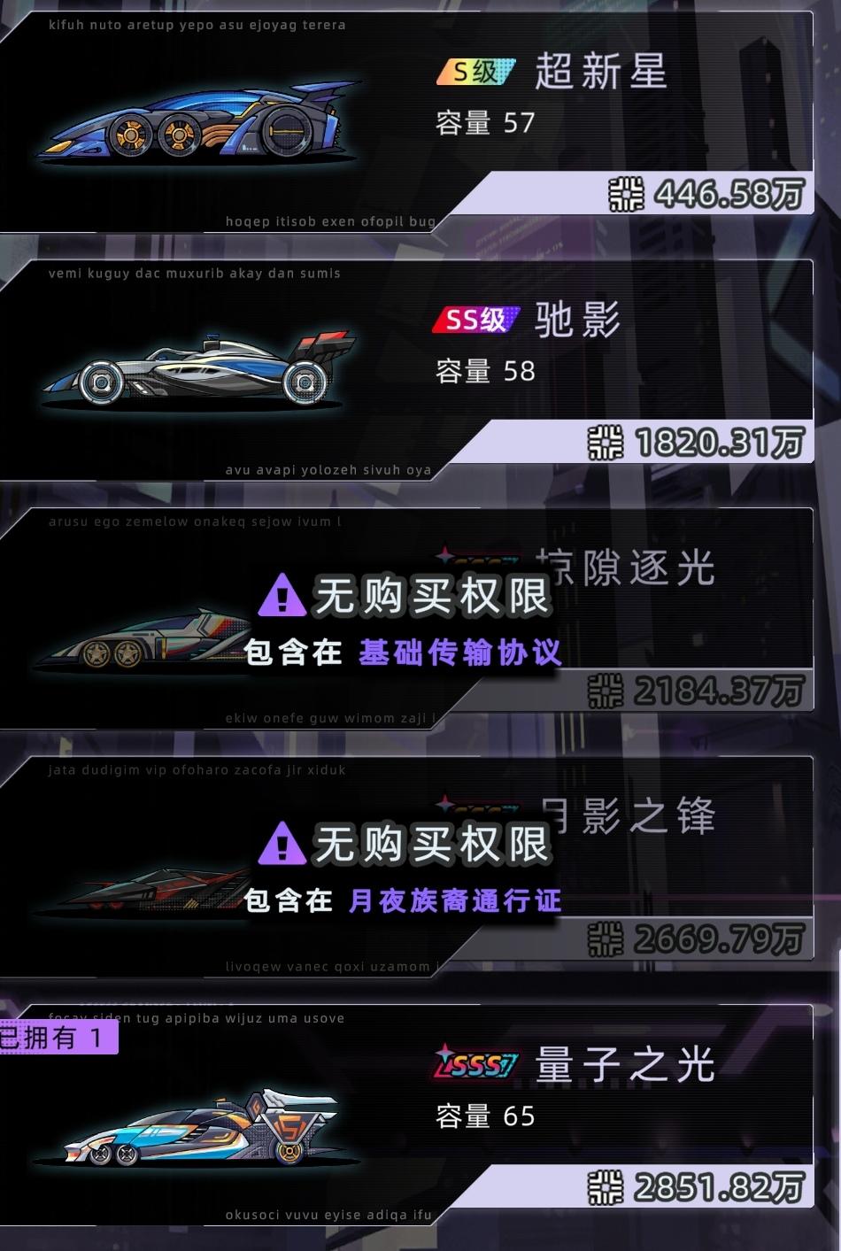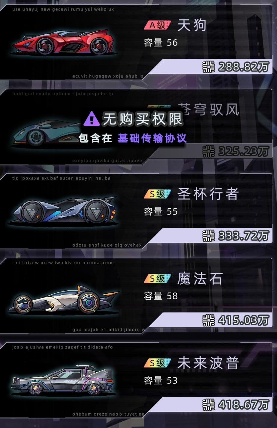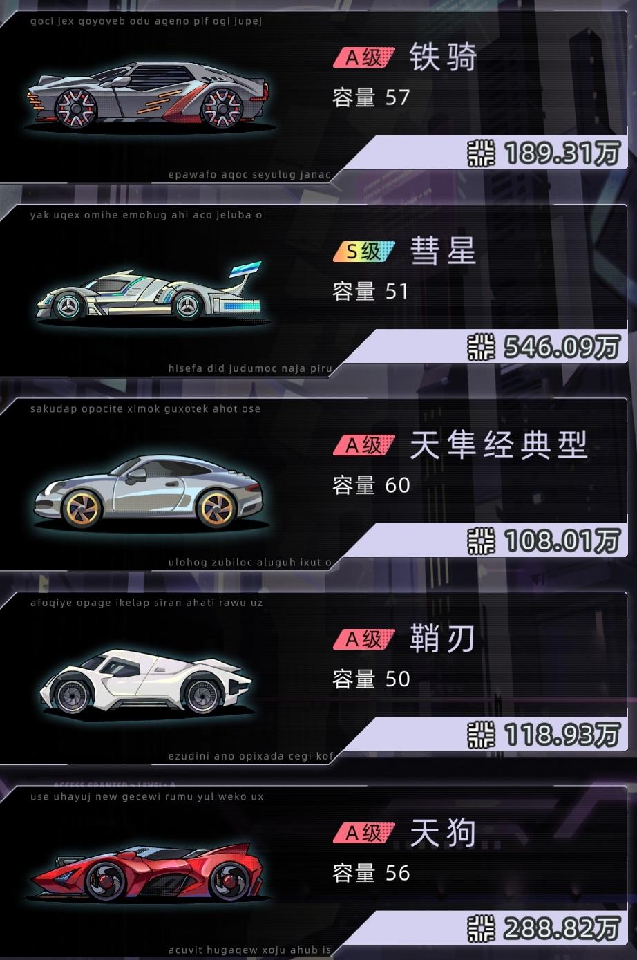 7.赛车的性能和容量很重要,有点逼氪了,驰影原装车最高时速576容量58,月影之风700,而npc可以使用月影之风,就差距挺大的,如果开代理人模式很可能亏本