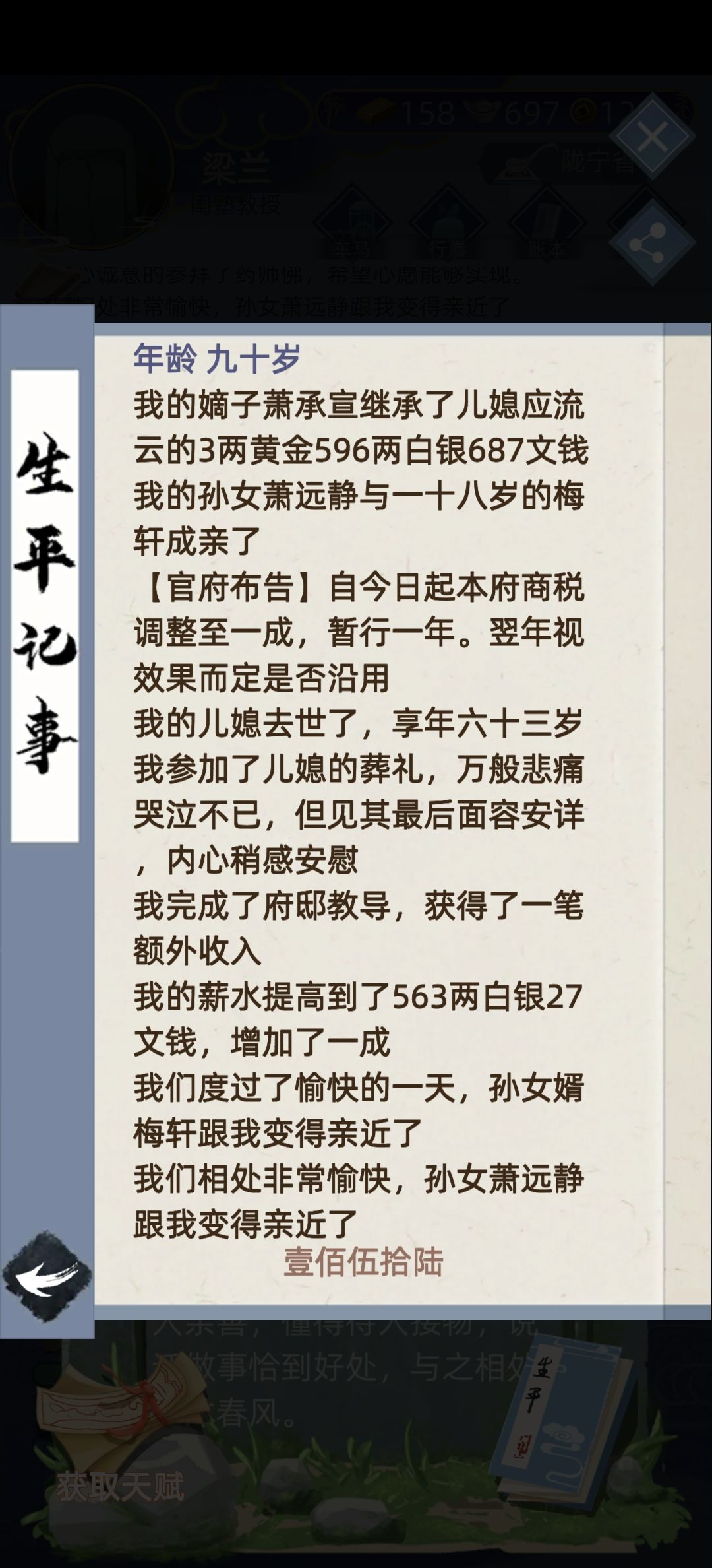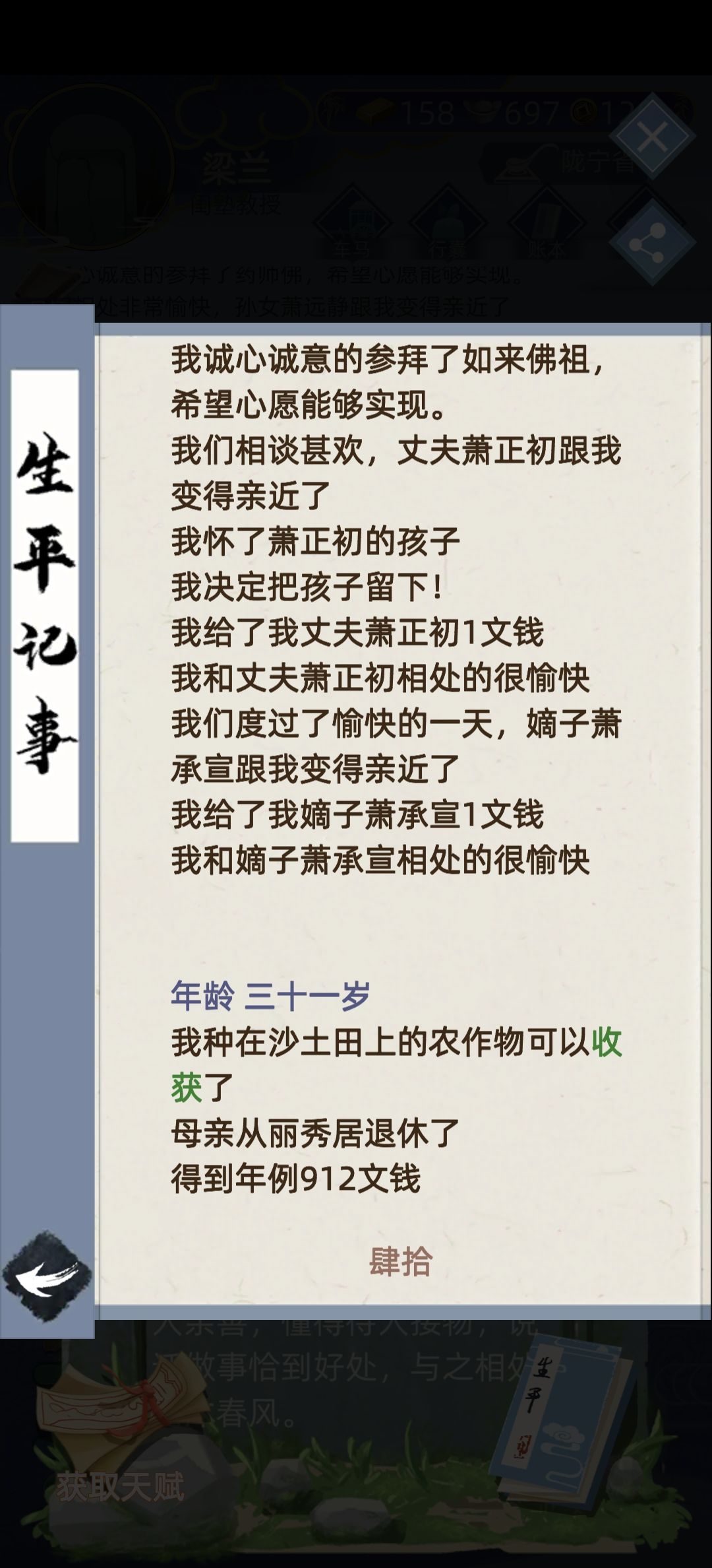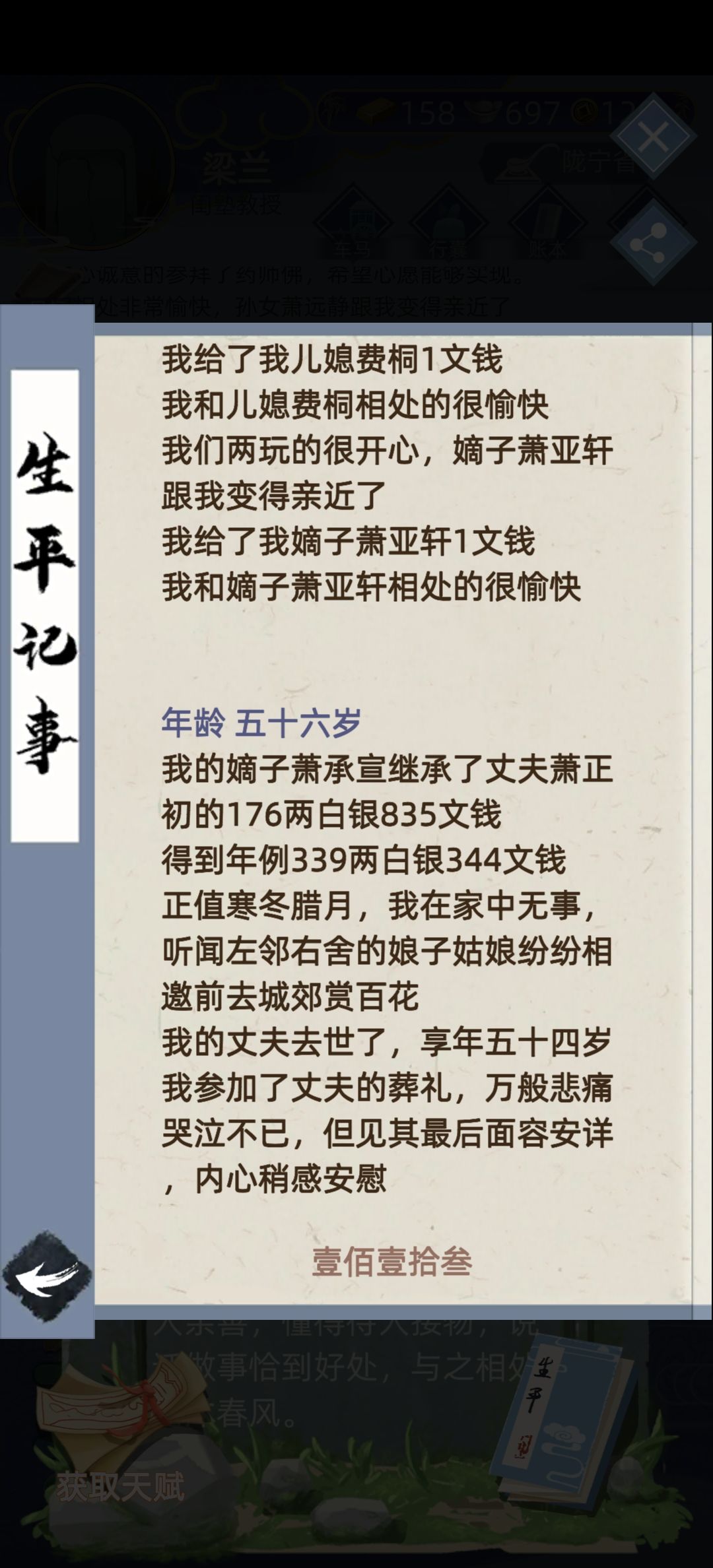 这个角色我就一直佛系玩,每年都以为要去世了,结果把丈夫熬没了,二儿子早逝,大儿子儿媳也早逝,孙女嫁了个超级丑的孙女婿还生了个女孩……终于在104岁寿终正寝了。