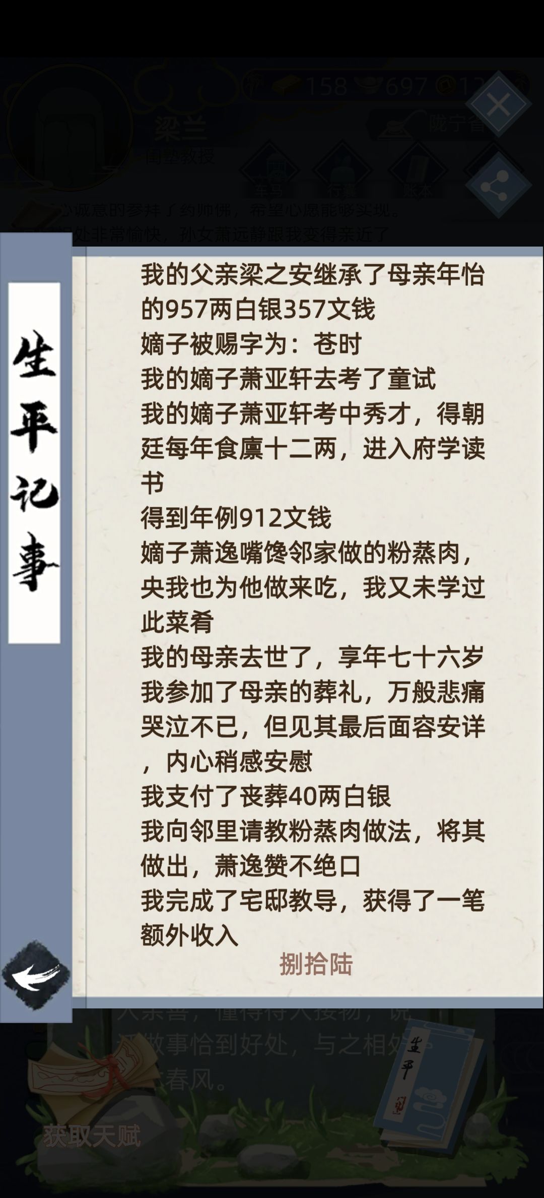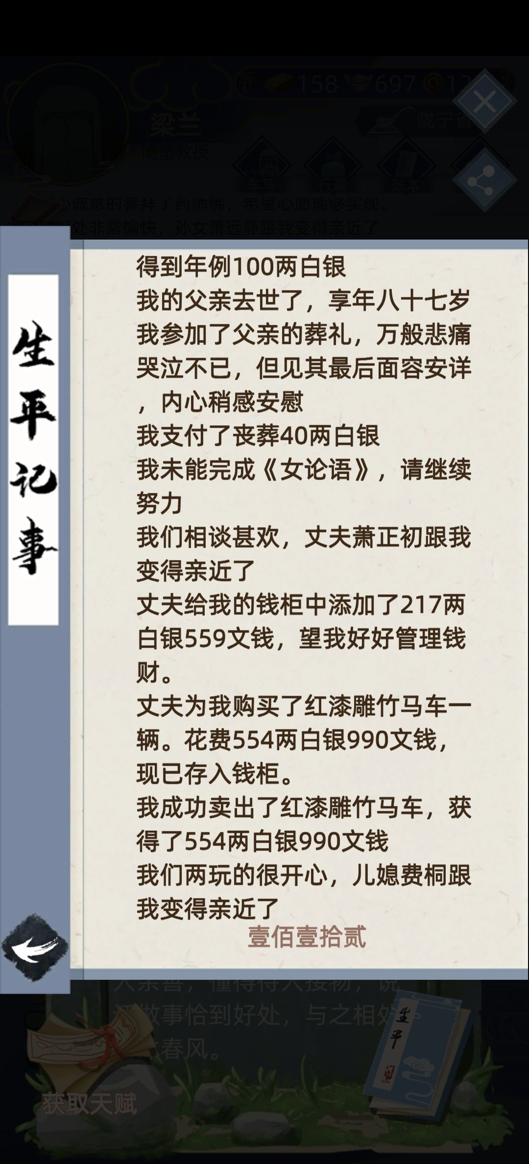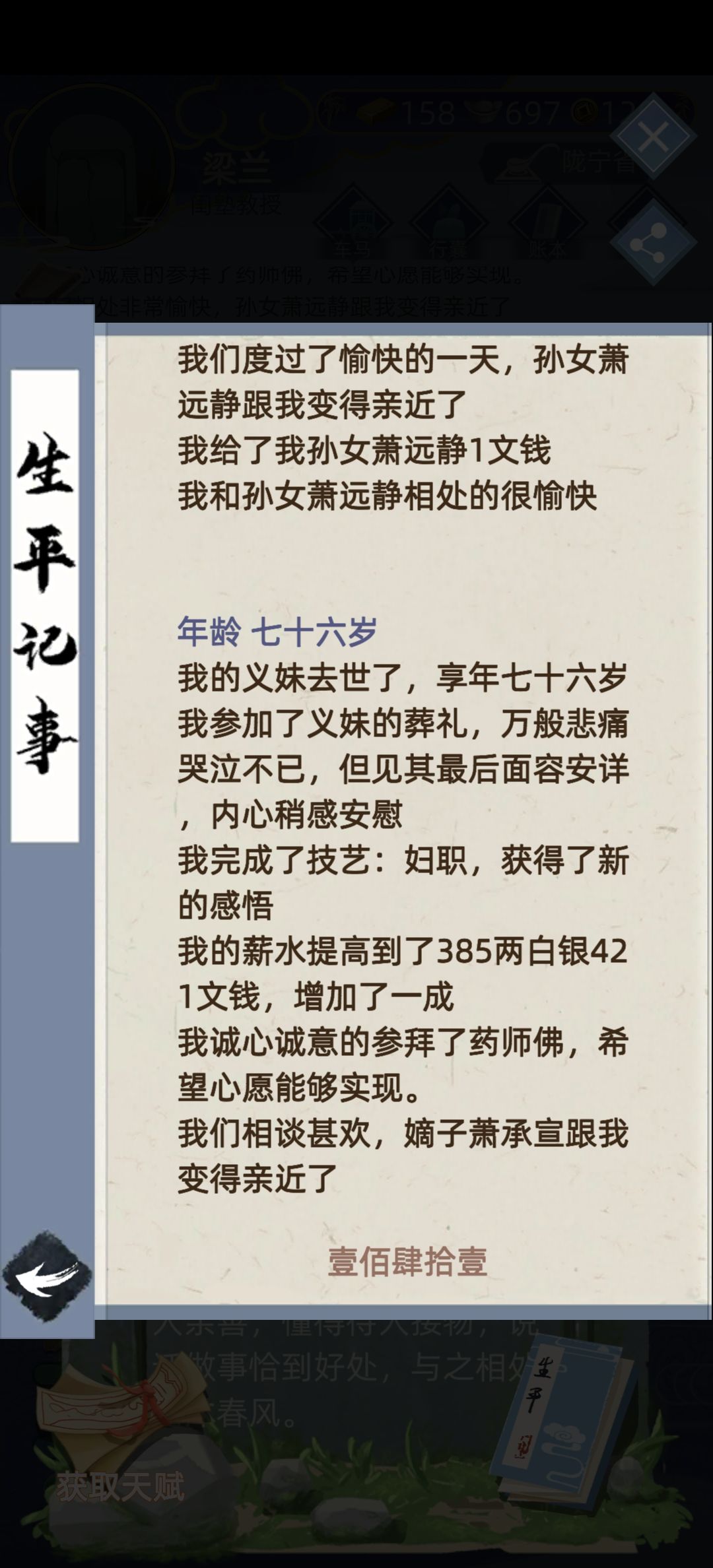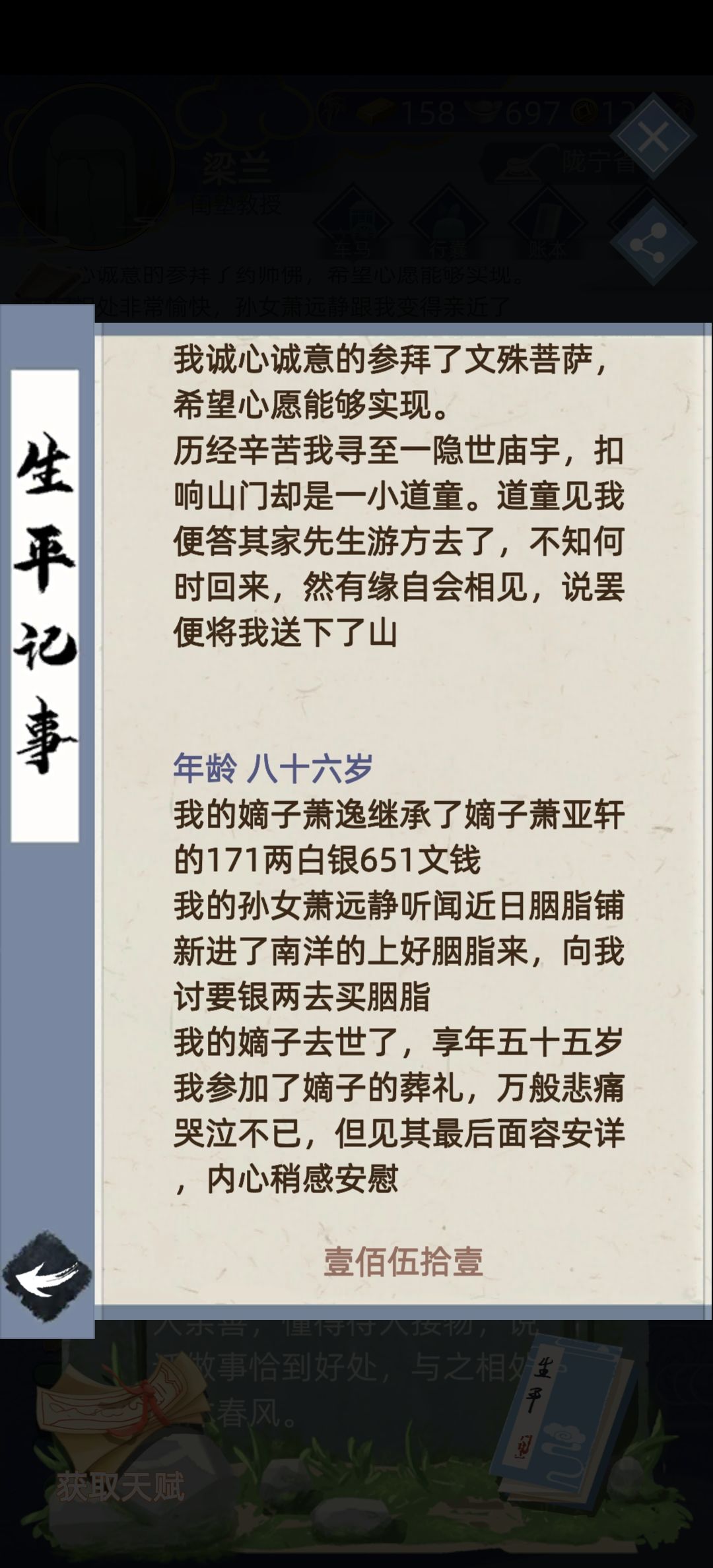 这个角色我就一直佛系玩,每年都以为要去世了,结果把丈夫熬没了,二儿子早逝,大儿子儿媳也早逝,孙女嫁了个超级丑的孙女婿还生了个女孩……终于在104岁寿终正寝了。