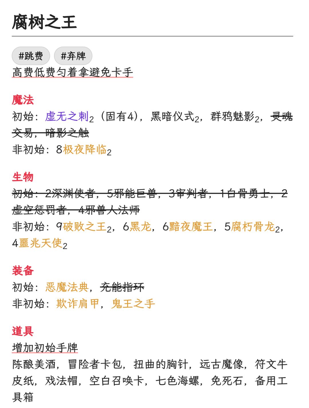 一句话总结:有法力真的可以为所欲为啊主动技能:2费,弃掉所有手牌,每弃掉一张,法力上限+1。被动技能:你的回合结束时,若无手牌,则抽两张牌。通关记录:腐树刚发布时,大家都感觉这个英雄有些超纲了。上...